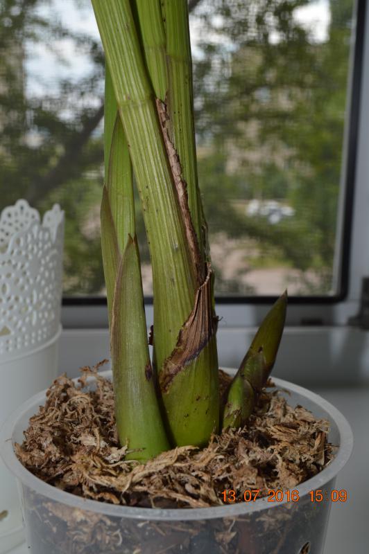 Я вынесла его на улицу еще месяц назад, последние 3 недели у нас идут одни дожди почти каждый день, солнца было всего раза 3, вот только чуть-чуть стало теплеть. Естественно, сама ни разу не поливала. Стоит прикопанный в землю (ро горшку даже видно). Поэтому пока не вижу смысла ничего менять в содержании. Но за совет спасибо.