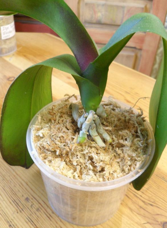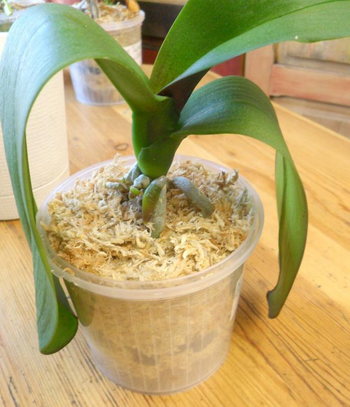 Уже и корни новые полезли). Учитывая свои прошлые ошибки - отрезала все по "самое нехочу". Оставила 2-3 корня, которые вынесут посадку в мох. Всех обработала рибавом. Корни не замедлили себя ждать). Только P. Ho s Black Cherub Orchis недавно в теплицу определила. Ждала чуда в родном мху. Зря. Когда мох старый убрала - пара корешков (все, что было) гнилые были. Тоже решила не расстраиваться. Жду фласки. Руку набью с этими мадамами. Надо отметить, что они долго ждали моего внимания. С 10.07.14г. Вижу, что листики начали сморщиваться, вот решила рискнуть, и посмотреть, что внутри. Листики начали восстанавливать тургор. Надеюсь - не ошиблась. Спасибо всем, кто помогал отправке заказа).