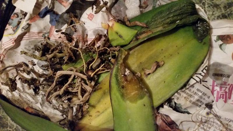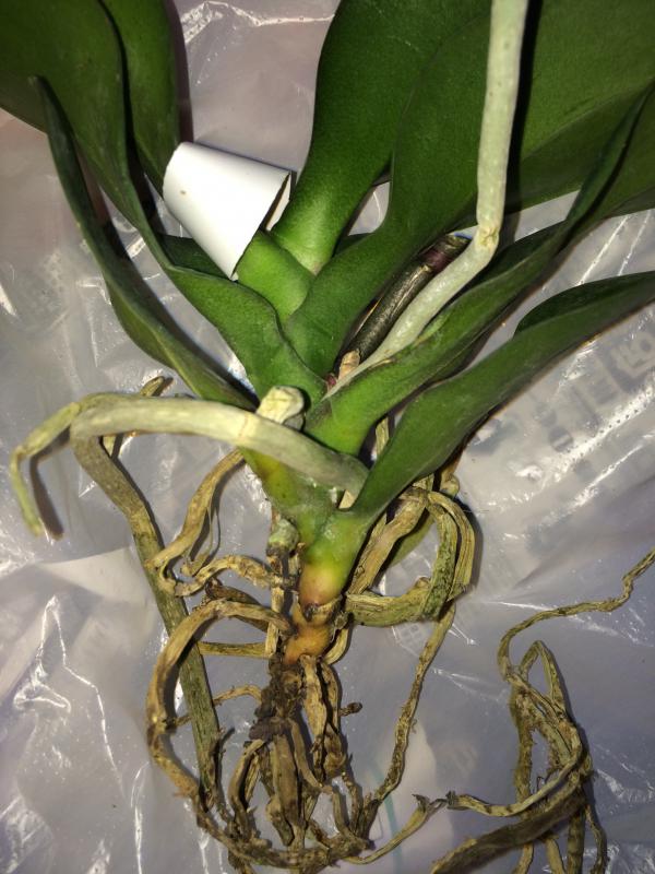 Спустя неделю растение отправлено в помойку, в связи с черной гнилью, которая распространилась моментально! по прибытии домой обработала от гнили, и посадила в мох, слегка опрыскала 2 раза по мху. шейка была не закрыта ни мхом ни корой. просто приехала с выходных и вся шея черная...срезала черные корни и часть шейки снизу- в надежде отрастить новые корни, но внутри все черное...:(