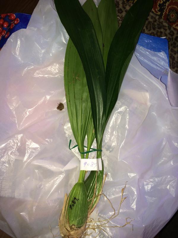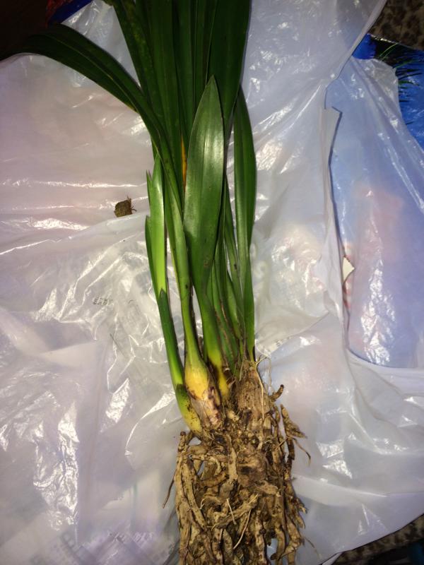 состояние хорошее, листьев много, пеньки от 2-х цветоносов, есть живые корешки