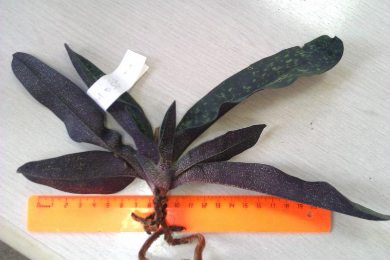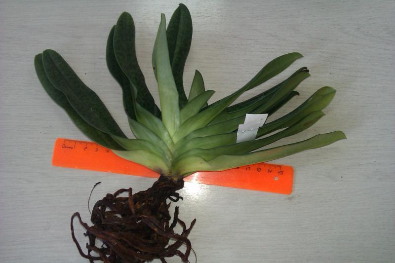 Мой отзыв нельза назвать объективнм, но забрала своего вожделенного Dtps. Purple Martin Blue в первый день раздачи - 12.10.2015. Было очень мало корней, все были достаточно сухие, после замачивания на 15 мин в воде выяснилось, что большая часть корней сгнила. Плюс на трех нижних листья были сухие черные пятна в большихх количествах. Листья с пятнами удалила, посадила в сухую кору. Сегодня растение распалось на "верх" и "низ" - спасать нечего, обе части сгнили напрочь, несмотря на сухую кору. Очень жаль растение, я его давно хотела. Неудачная, имхо, поставка.