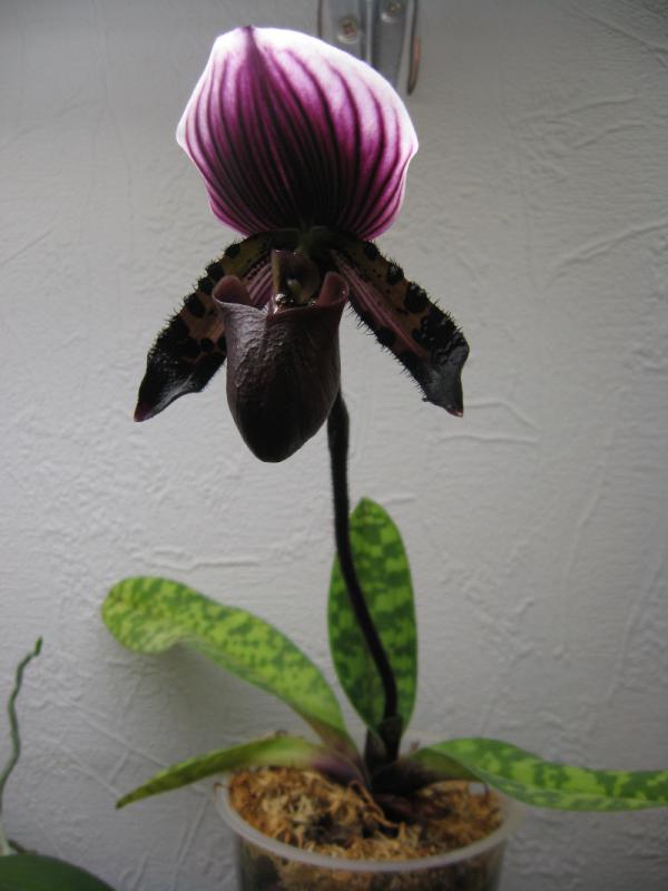 Будет типа вот этого башмачка. Это очень давние фотки и, не помню, швертеровский ли это Paphiopedilum maudiae vinicolor или Paph. Maudiae x Paph. Voodoo Magic....
