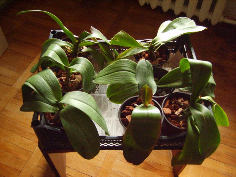 групповое фото фаленопсисов,совсем маленький Dtps.Formosa Cranberry Pudding.На фото он клоп по сравнению с другими