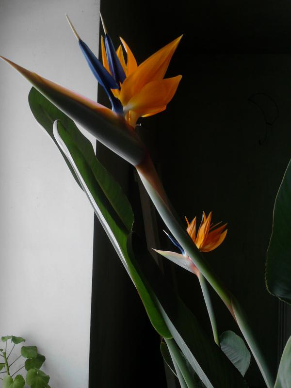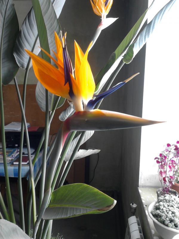 Посадила я как-то семена стрелиции (примерно в 2007г). Они дружно проросли и были подарены маме. У меня цветы ассоциируются с жар-птицей. За погром на заднем плане извините, ремонт, комната нежилая.