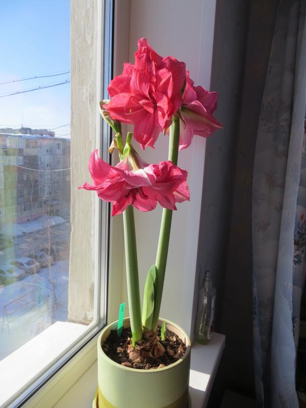 Ольга Джесс, у меня стоит на южном утепленном балконе, ничем не притеняю (хотя там летом жарит основательно - 15 этаж, солнце ничем не закрыто), после пересадки из очень тесного горшка в нормальный выдала аж 3 стрелки (я то думала в этом году вообще прокатит после такой грубой пересадки). попить она очень любит, но болото разводить не стоит)). удобряю, как вспомню. в принципе в теплое время получаются перепады температуры, т.к. окна на балконе почти всегда открыты