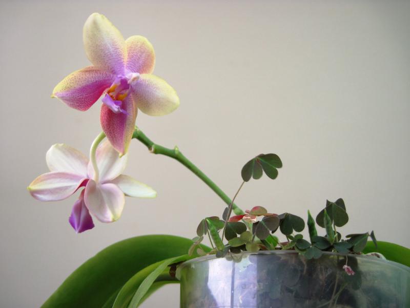 Партизанка-кисличка, пользуясь тем, что внимание достаётся цветущему Лиодоро, как-то незаметно процвела (вот интересно, совсем цветов не видела) и благополучно растит стручки. Планирует заселение соседних горшочков. Вообще-то она симпатичная. И не сухо ей в коре, с её нежными корешками и листочками. Как поняла, это обычный спутник орхидей. Может быть кто-то знает, как она по-латыни называется?