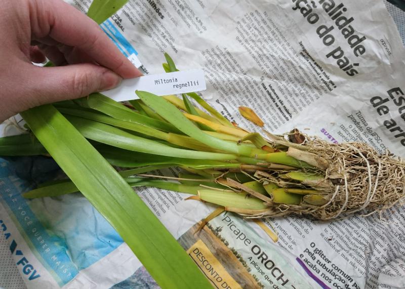 COELOGYNE cristata - отрезанная деленка без корней, на вид вполне живая, два молодых роста удалила - один сломан и высох, другой пожелтел. Буду пытаться вырастить корни у двух оставшихся молодых ростов.