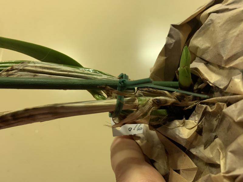 Огромное растение, много бульб, длинные листья, весь горшок в корнях, которые уже стали вылезать, сидела в коре, живности не заметила. Толи новые рост, толи цветонос (очень хотелось бы поскорее цветение, вот цветочные почки везде и мерещатся). Большое спасибо организаторам и всем причастным!