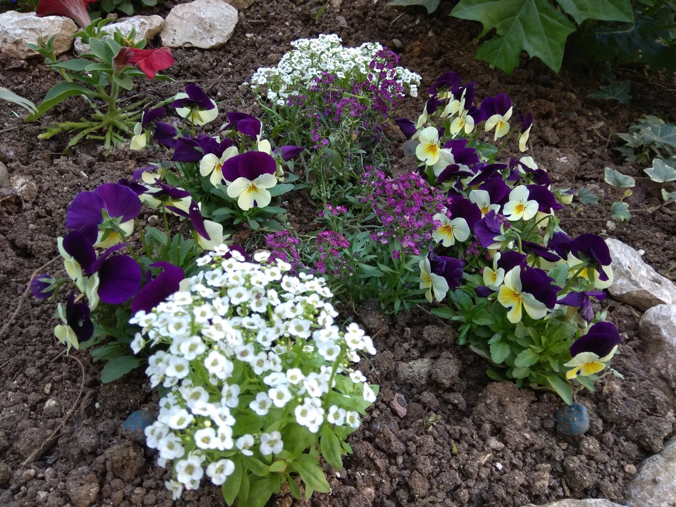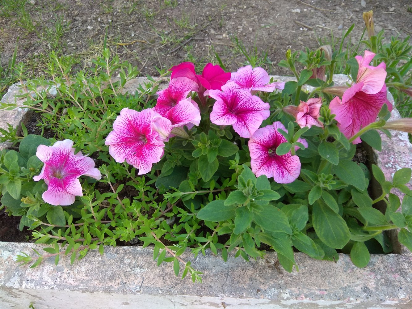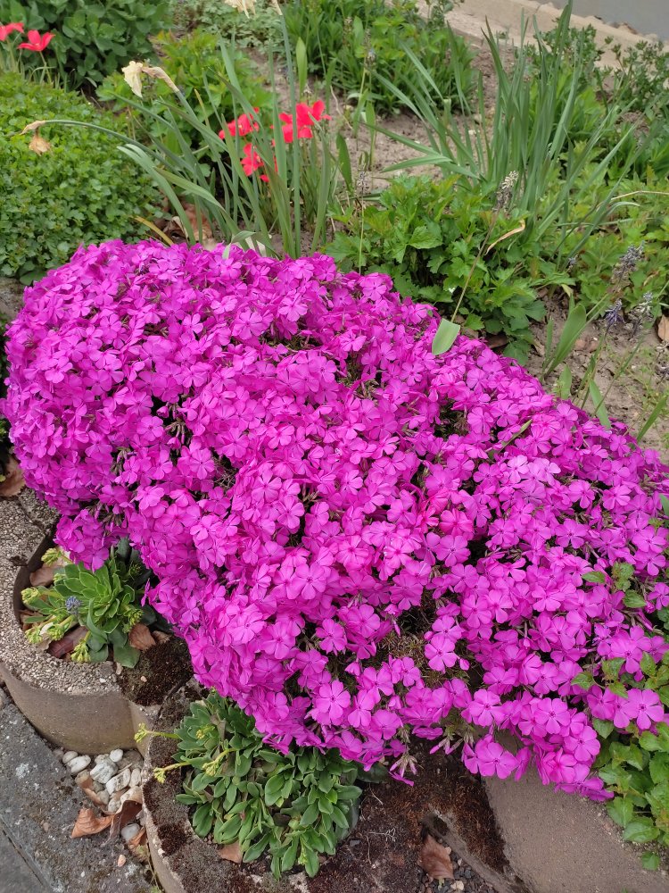 Желтые цветочки-это алиссум скальный, пурпурные-обриетта ( аубреция), и последние-флокс шиловидный.