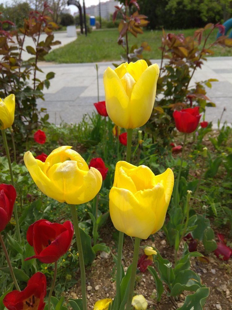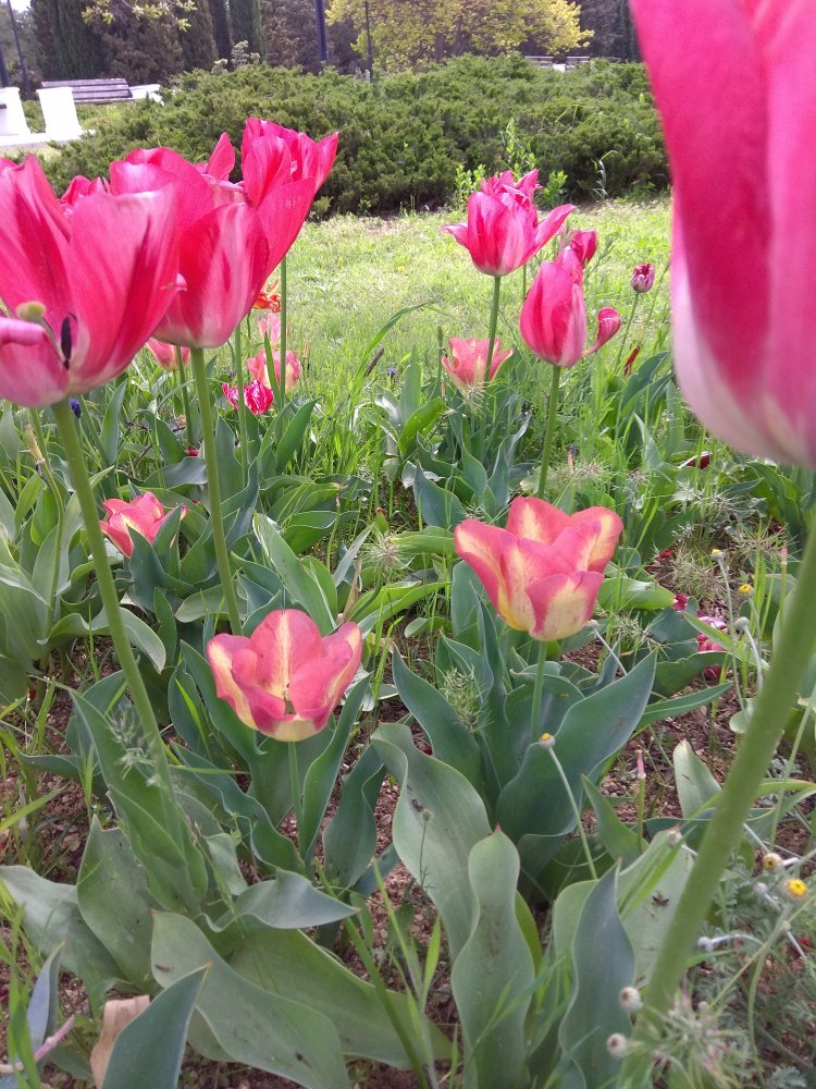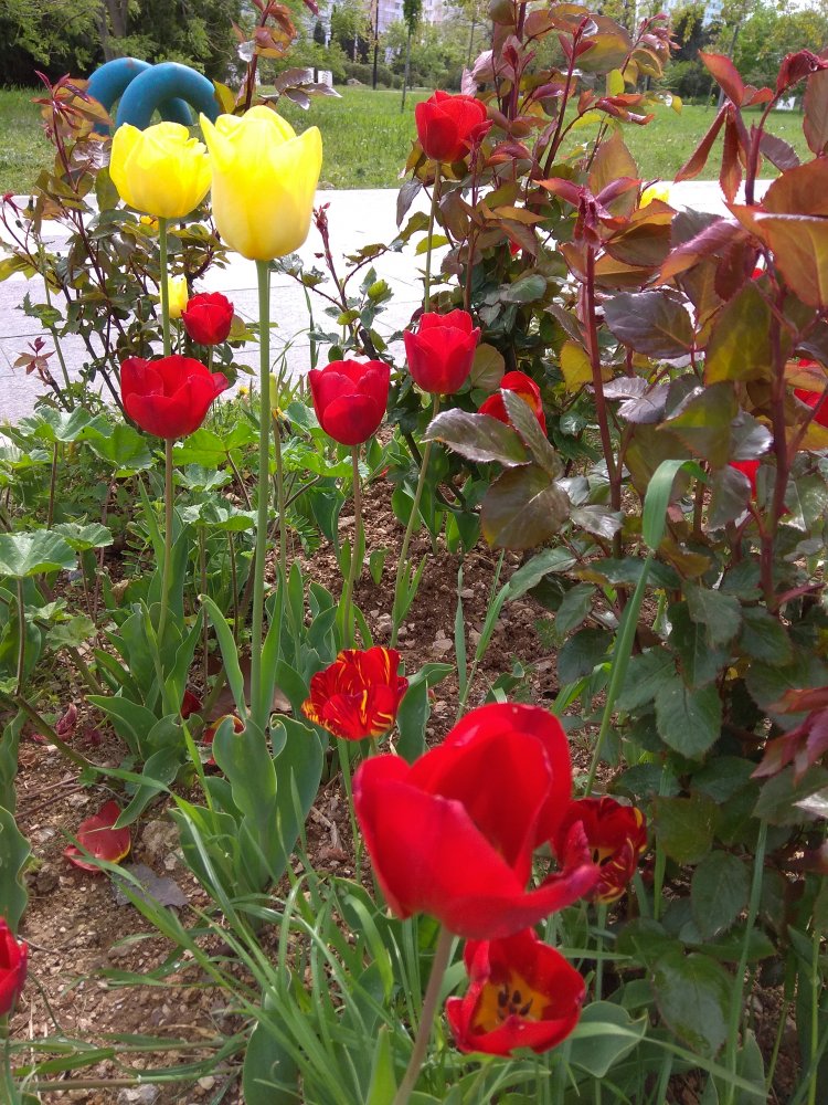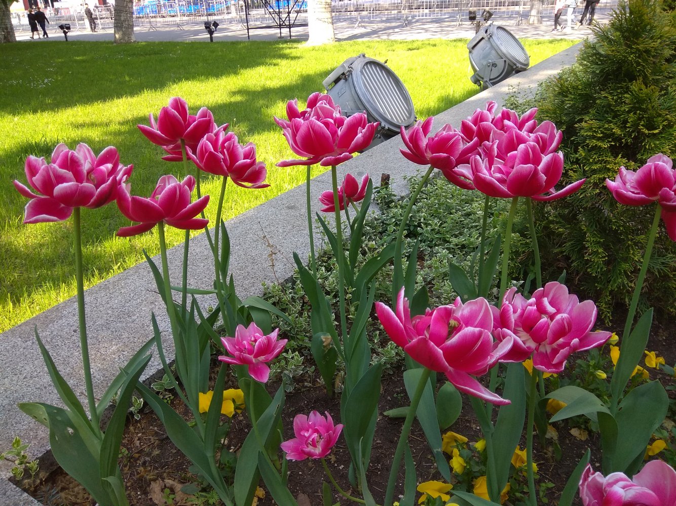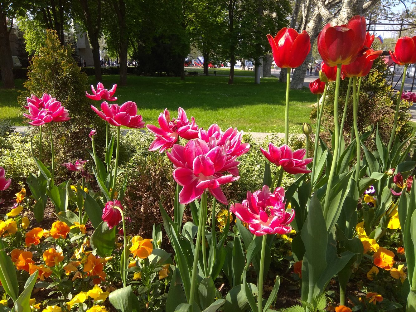 Какие грандиозные тюльпаны я сегодня увидела,- невысокие, в диаметре 10-12см!!! Очень похожи на махровые пионы, но это тюльпаны!!! ОЧЕНЬ КРАСИВАЯ КЛУМБА!!!