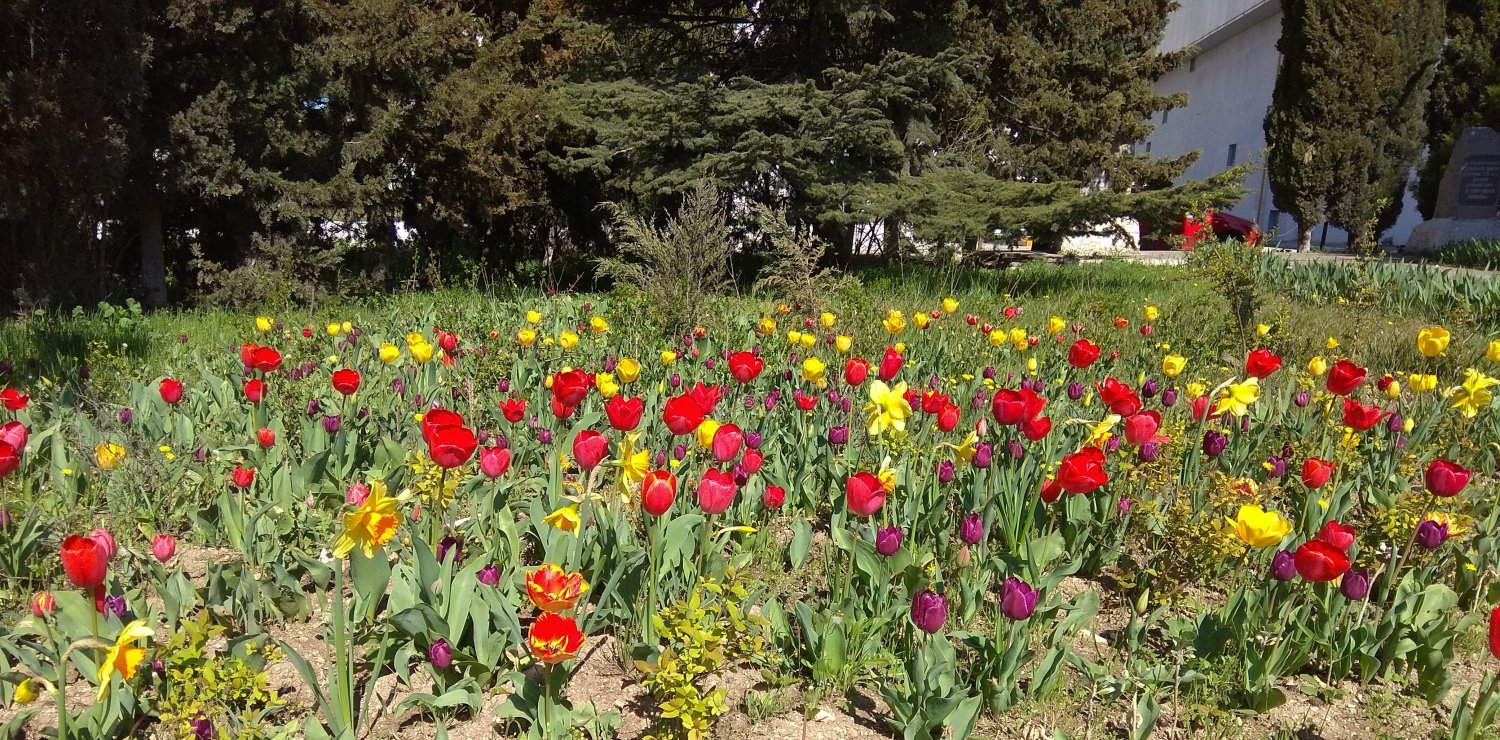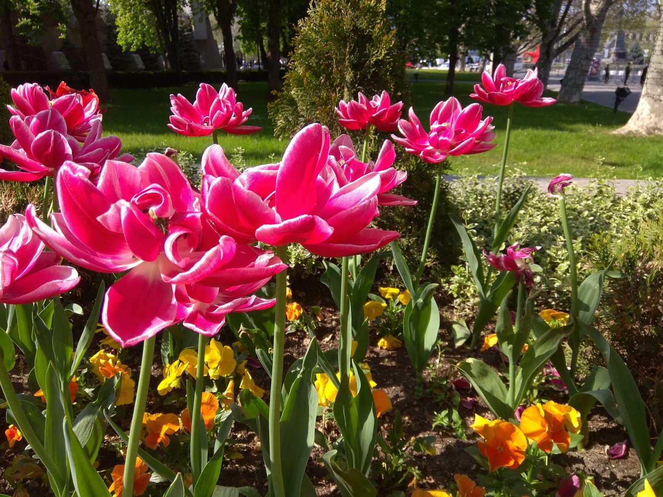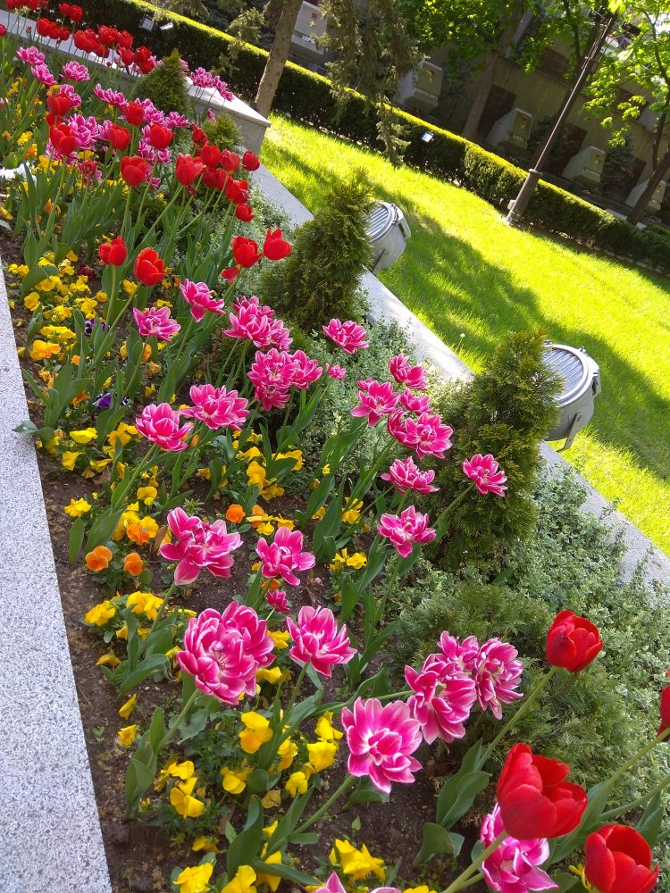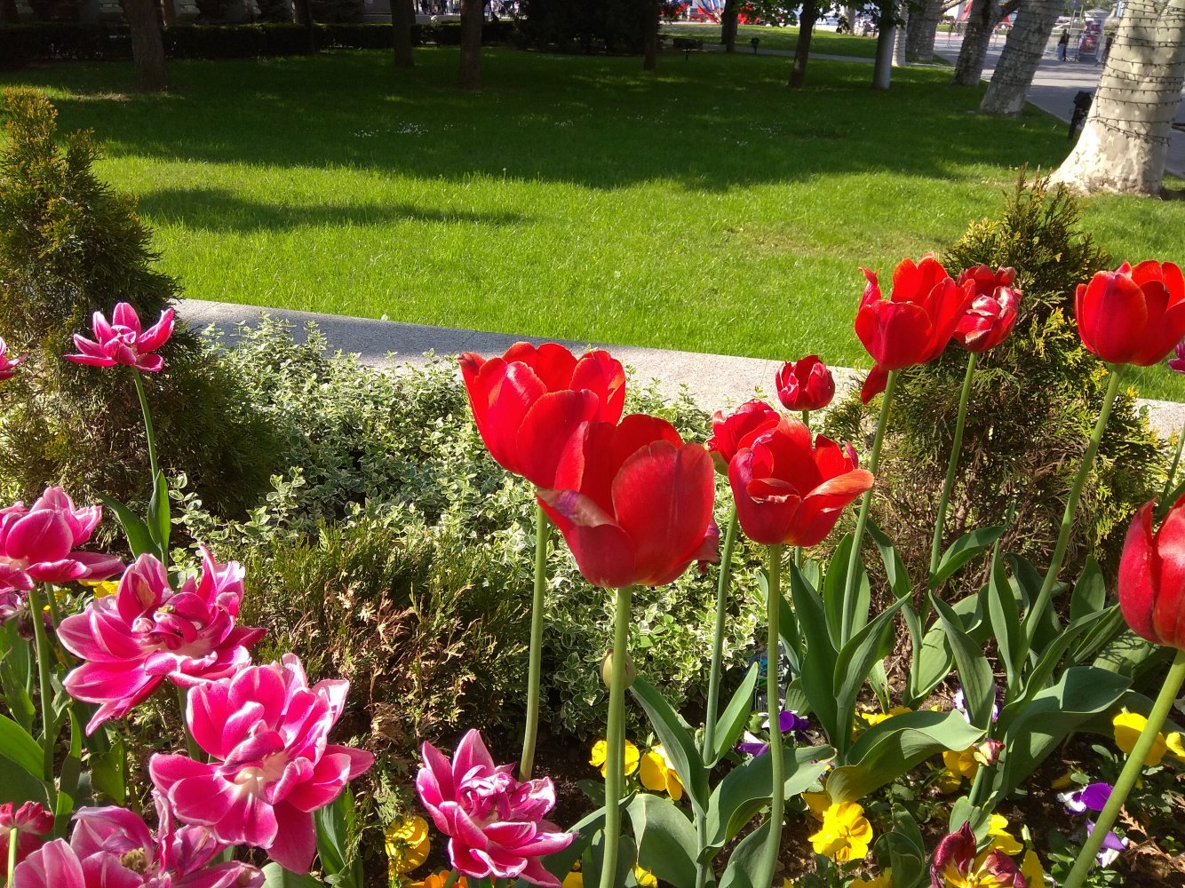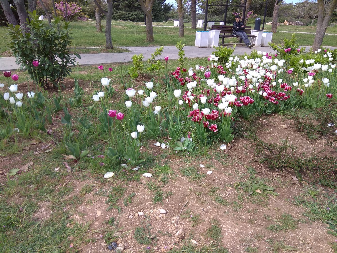 Какие грандиозные тюльпаны я сегодня увидела,- невысокие, в диаметре 10-12см!!! Очень похожи на махровые пионы, но это тюльпаны!!! ОЧЕНЬ КРАСИВАЯ КЛУМБА!!!