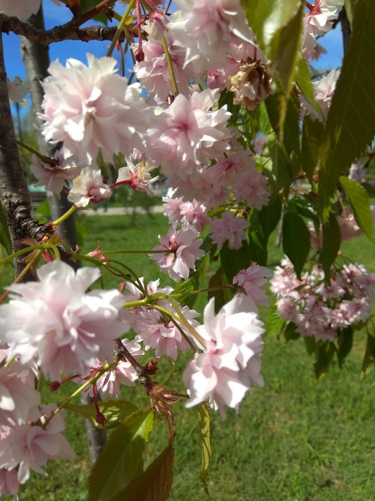 В Парке Победы посадили очень много молодых саженцев. И вот они зацвели!!! Это один из видов. Нежный розовый цвет лепестков, букетное цветение...!!! Дерево как будто в розовом облачке!!!