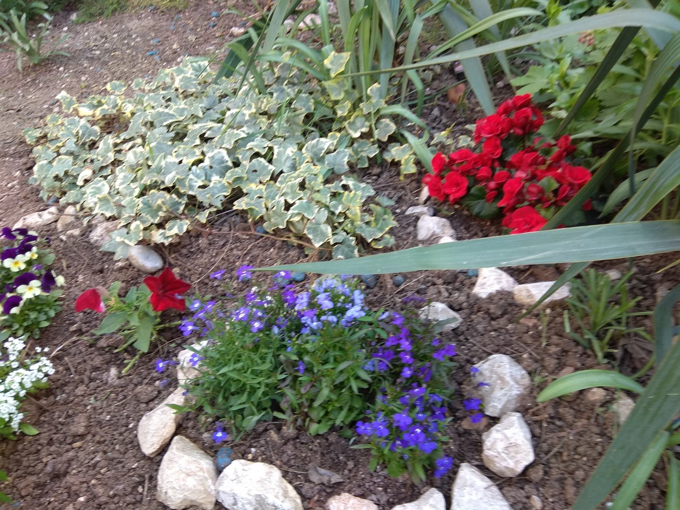 В нашем дворе тоже есть свои ландшафтные дизайнеры,- высаживают цветы на клумбах, есть даже "альпийская горка"...