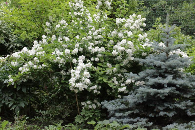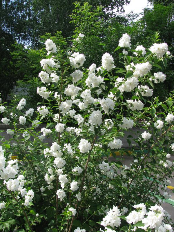 А что за чубушник? "Снежная лавина" это так и называется сорт? У меня похоже выглядит Сноубелл но у него поникающие "водопадные" побеги - выглядит фантастичски и он совсем некрупный - около 50 см высоты (из за поникания побегов) и около 2 метров в диаметре (опять же из-за распластанности побегов).