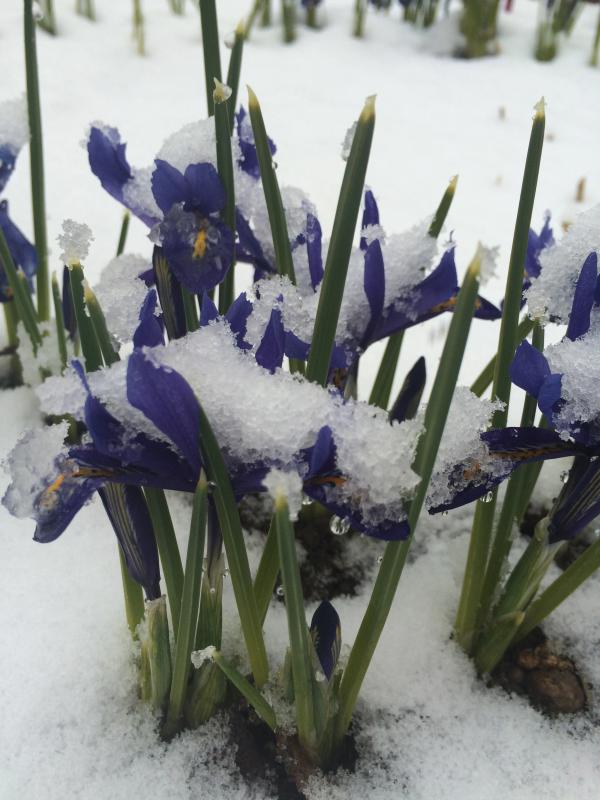 Это и есть ирис только весеннийзовётся Иридодиктиум, или Ирис сетчатый, листики у него как у крокусов, и расцветки разнообразные бывают.