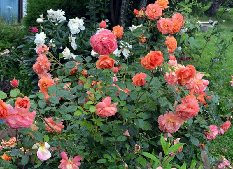 Две недели не была в своем саду, там прошли сильные ливни, поэтому красивых пионов и ирисов не застала:( Ирисы вообще отцвели, а пионы мокрые лежат. В этом году порадовала грядка с оранжевыми розами, на удивление все дружно и обильно цветут:girl_rapture: