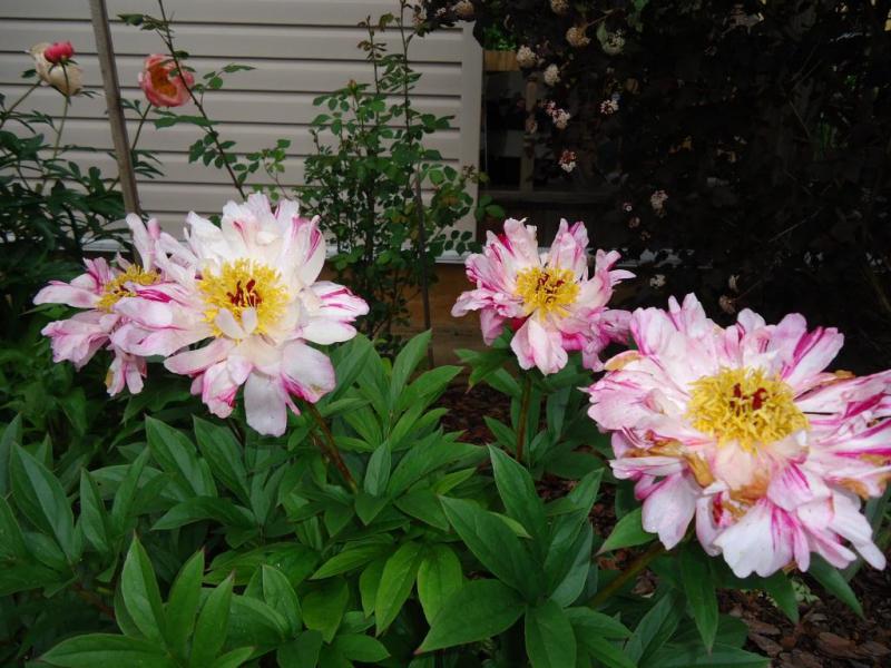 Bartzella, Корал Чарм. Корал Чарм мне кажется показывала, но он того стоит. Очень рекомендую. Он расскрывается коралловым, потом светлеет. Получается на одном кусте некоторые цветки коралловые, некоторые цвета топленого молока