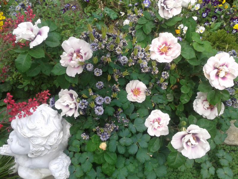 Синего пигмента в розах природой не заложено, поэтому синих и голубых роз не бывает. Говорят, японцы что-то с ДНК сделали, но пока никто не видел. Но есть сорта роз с различными оттенками, которые в тени или издали могут показаться голубыми. У меня была одна чайно-гибридная, давно, красивый голубоватый оттенок. Один сезон была, не перезимовала. А название не помню. МОжет даже есть где-то фото.
