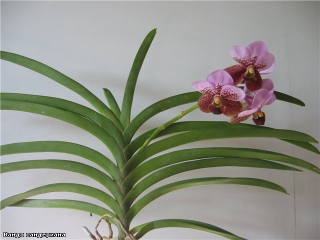 В апреле получила взрослое растение. Месяц ушел на адаптацию (весна все-таки, поэтому так быстро). Потом начали растить корни, усиленно питаясь. В июне появился первый цветонос, который ребенок, пока я была в отпуске 10 дней, успешно сгноил, ежедневно купая ванду по моим инструкциям. В начале августа появился второй цветонос. И вот цветем. За это время выросло несколько корней и три новых листа.