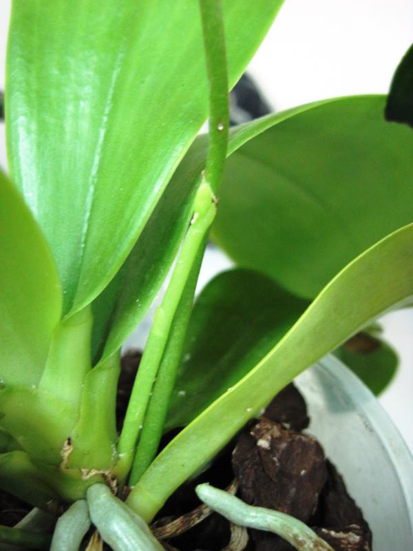 Фаленопсис pallens растит кучу боковых веточек на куче старых цветоносов, и новые цветоносы рядом со старыми. А цветение-то когда! :girl_expect: