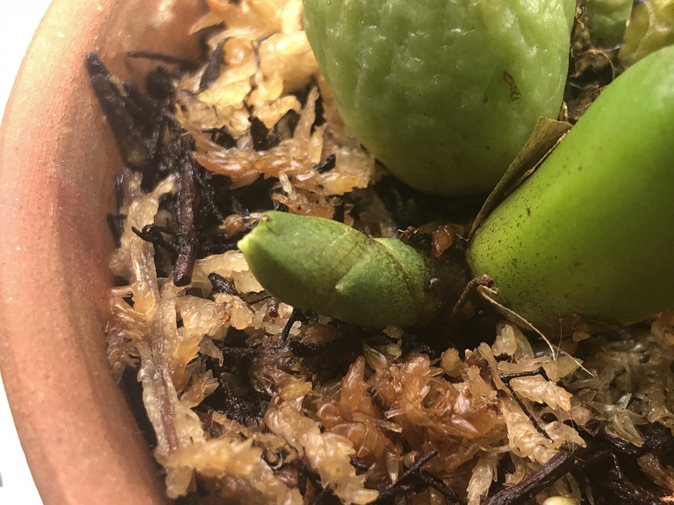 Сегодня при осмотре🤩🥳 обнаружились ТРИ цветоносика на Dendrobium Ueang Pheung (Den. jenkinsii x Den. aggregatum), дальше вертеть/искать не стала, побоялась, что закапризничает. Приехал от Швертер 5.07.16 малышом. Анонсировался как обильно цветущий, и размером меньше чем линдли, но больше чем дженкинса. Но хозяйка (я ) так старалась его накормить, что бульбы выросли неменьше чем у аггрегатума. Теперь бы не сглазить (нет смайлика плюющего через левое плечо)