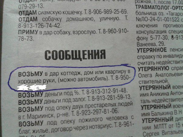 еще одно объявление из нашей местной газеты:
