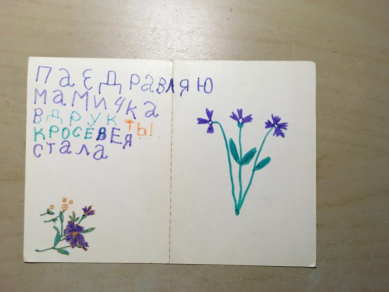 Ностальгировала на днях в своих подарках от детей. Моя первая открытка от старшей дочери. Пятнадцать лет назад... Видимо я была не очень красива..:blush::