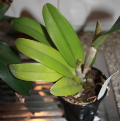 Вот хотел бы я получить хоть когда-нибудь каттлею с таким вот листиком. Бывало всякое. Получал и доводил до цветения. Получал и доводил до могилы. Получал и (пока) ни до чего еще не довел. Даже лика как-то с цветоносами приехала, светлая ей память... а с каттлеями самому возиться приходится. Плюнуть что ли на все свои заморочки, сменить ориентацию (орхидейную) и заказать побольше каттлей... у Швертера... глядишь, какая-нибудь и с листиком таким придет... ведь у Швертера я делал первый свой заказ через инет... зря подзабыл эту фирму. (Марина, не сердись на дразнилку с листиком, это я от зависти - в конце концов все мы когда-то чего-то не знали или не умели... ilvoe, покажи потом всем чего вырастет, порадуемся вместе)