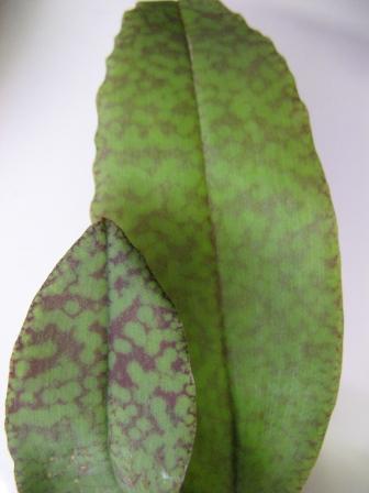 Девочкам огромное спасибо, орхочки упакованы изумительно, растюшечки очень хорошо перенесли дорогу. Правда при разворачивании бумаги, когда открывала малютку Phal.stuartiana, сразу выпал центральный листик - был какой-то мокрый и темный к центру роста. (Леночка, наверное его вы имели ввиду, написав что фалик с мокрым мхом) Остальное состояние фалика хорошее, самый крупный листик 10 см., корешки целые, живые. Листики просто восхитительные по окрасу, снизу торчик какая-то острая пимпочка (но сомневаюсь, что у малыша это цветонос) Постаралась очистить центр от остатка плохого листа и всыпала туда корицы (другого ничего под рукой не оказалось). Может кто посоветует как за ним следить, чтоб спасти.
