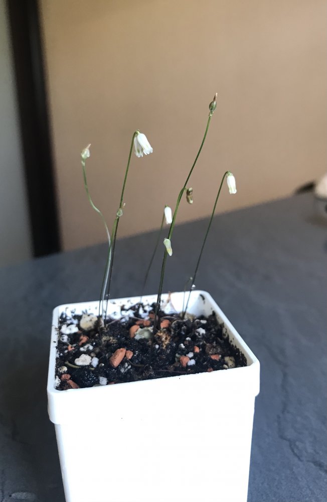 Drimia pusilla-Renniekop. У этой малышки все строго. Сначала растут листики иголочки, потом листики опадают появляются цветочки-колокольчики. Ну и потом детки малютки зреют под землей. Горшочек 5 см.