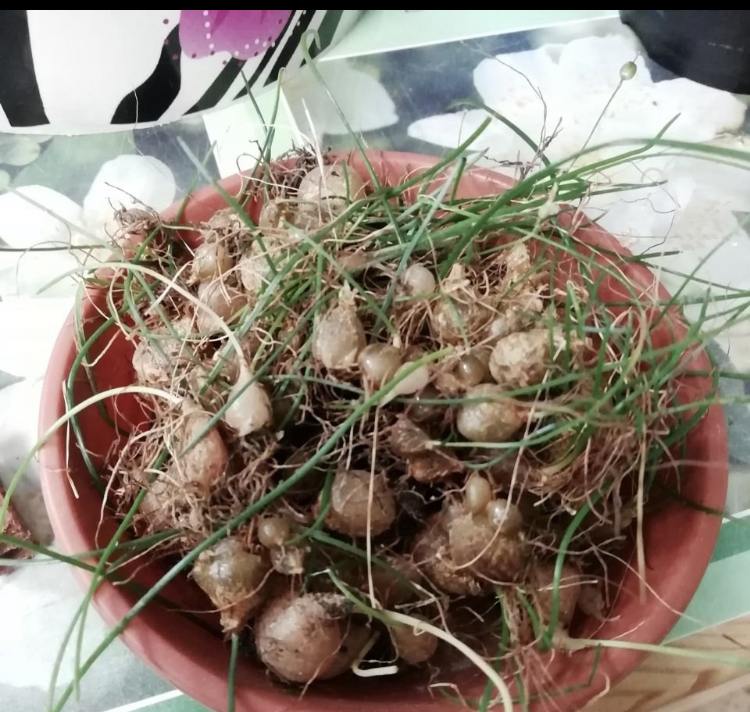 На луковицы Шизобазиса похожи (или еще встречается Схизобазис). У меня растет такой. За ним интересно наблюдать.
