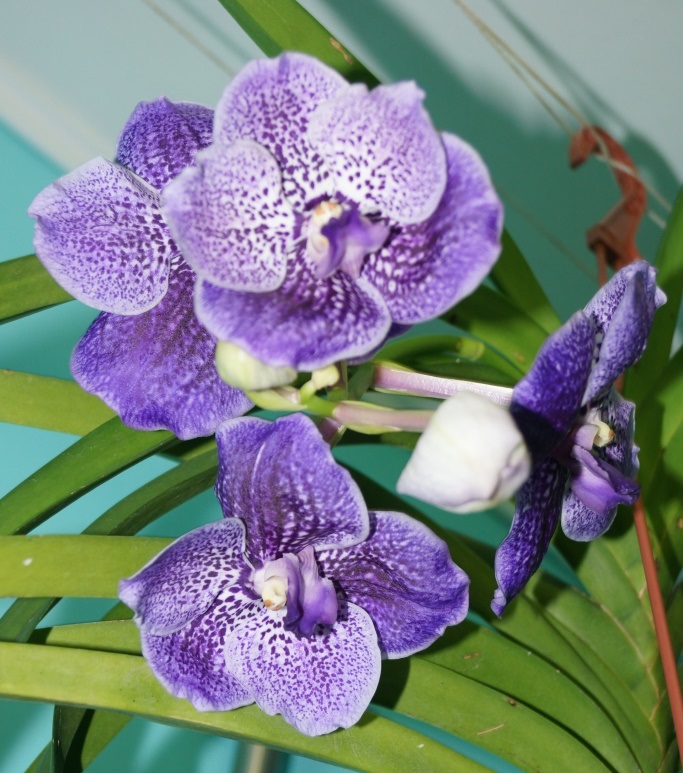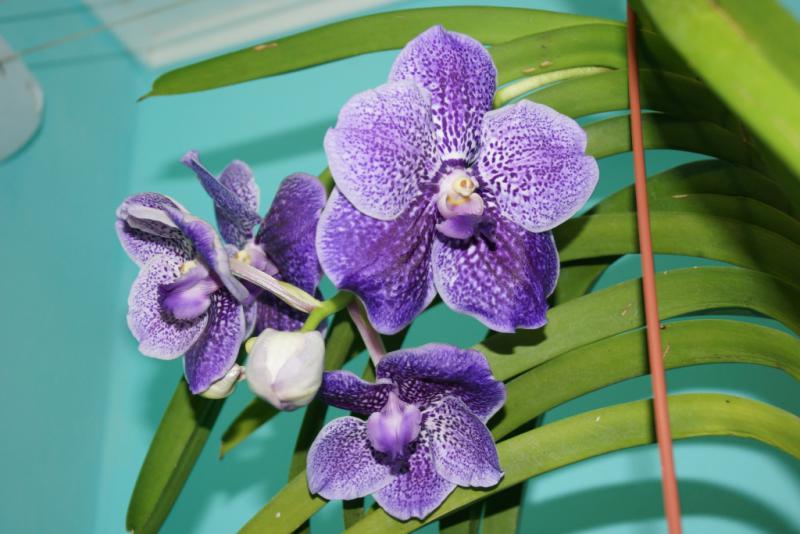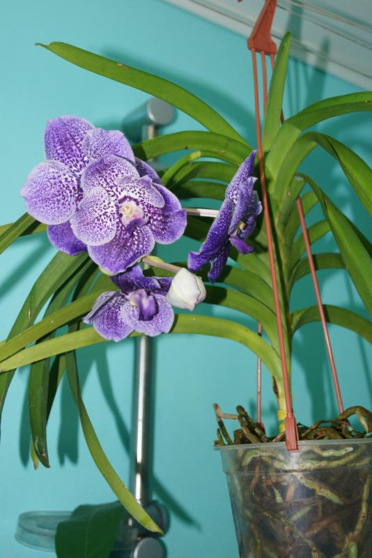 Ботва у нее оччень лошадистая ))) самая крупная из моих ванд. Р.Д.ред у меня тоже есть, она мельче по габаритам (а цветы покрупнее были) Эта фотка в ванной со вспышкой, она вживую если и потемнее, то не сильно. Скорее, оттенок другой, больше фиолетового, а синего нет вообще.