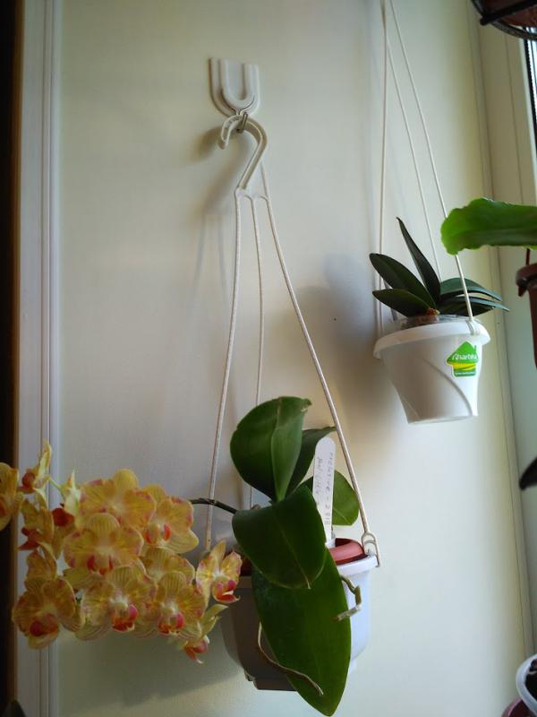 Елена Сочи, только добралась до компьютера. Это не держатели, а пластиковые хомуты. Можно регулировать местоположение и размер под горшочек. Очень удобно. Муж посоветовал. Вот поближе.