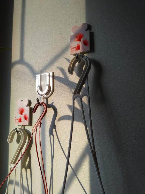 Обычные самоклеящиеся крючки из хоз магазина, весом до 2х,3х кг написано выдерживают.Но я тяжелые горшки не вешаю. 2,5 размером в основном. Пленку оторвала, прижала, подержала полминуты, вешать лучше на след день, чтоб схватилось.