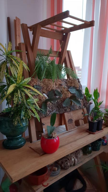 Светило, да) панно по прежнему в ванну ношу поливать) но оно не тяжелое ,пока...От рамы деревянной , а оно тяжелое, пока мест отказалось, стоит в запасниках, с орнаментом и работой зависло все... опрыскиваю ,когда лень поливать.... туманчик приобрела, что бы сверху окатывал,не знаю ,как приспособить его, да и дожди все время льют, влажности хватает.