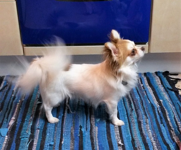 Младшенькая Нюша. Очень спокойная, флегматичная. Позволяет делать любые манипуляции: когти стричь, уколы делать, в глаза капать. Но если кто из собак пытается утащить ее игрушку, сразу зубами хвать, причем молча. Без разговоров!