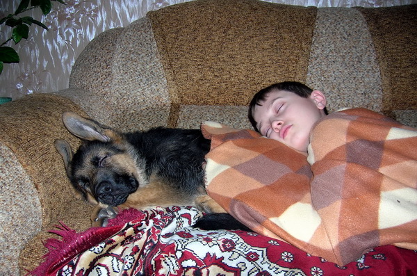 Ах, да, Филя - у него вредная привычка - догонять человека и за пятку - цап... Меня пару раз кусанул!