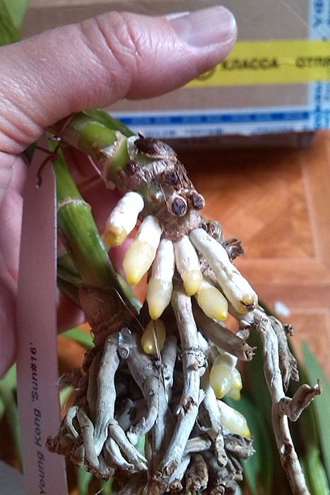 Еще у (Blc. Pamele x Lc. Taiwan Beauty) пришлось почистить ризому и бульбу одну срезать, но там всё в порядке будет.