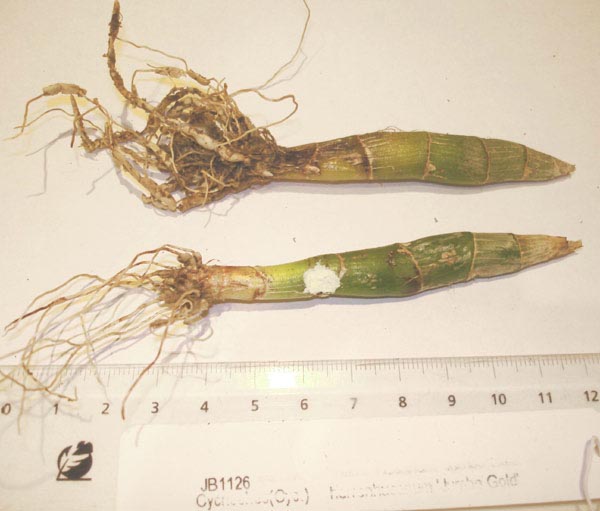 Cycnoches herrenhusanum "Jumbo Gold" - одна бульба гнилая у основания - в помойку, со второй пришлось вырезать пятно.