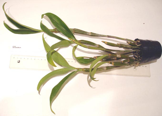 На дендробиумы поставщик не поскупился, пришли в горшках, очень плотный колтун мокрого мха. Линейка 40 см.