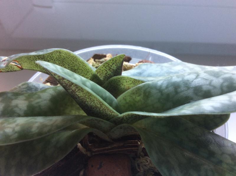 Весной получила паф Конколор. Не пишу обычно - у меня это плохая примета. Растение как игрушка со сверкающими плотными листьями,ухоженный (спасибо ещё раз Снежане). В этот раз,несмотря на примету,всё равно уронили в первый же вечер. Обнаружились крепкие корни и даже с растущими кончиками. 2 розетки одинакового размера в грунте из разного кокоса и чуть керамзита. Без коры,что меня удивило. Даже с поломанными листьями меньше чем через месяц появились новые листья в обеих(!) розетках. Ничем не удобряла. Почти сразу полезли новые корешки,решила им помочь,т.к.немного не доставали до грунта. Подсунула совсем немного мха -не понравилось, сразу закуклились оба. Первоначально думала насыпать ракушечник,но в моих условиях,когда 8см горшочек высыхал за день-полтора,стало бы ещё суше. Что посоветуете,любители пафов? Листья продолжают расти