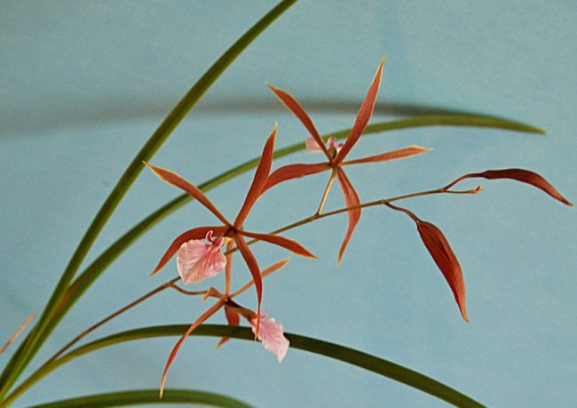 Цветы некрупные, но они собраны в кисти, и если к этому прибавить бордовый цвет бульб, появляющийся при хорошем освещении, то растение смотрится очень эффектно.