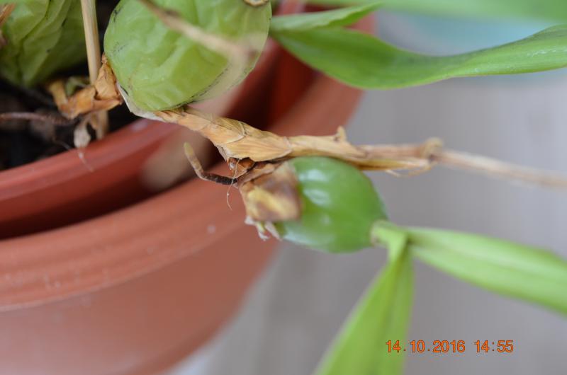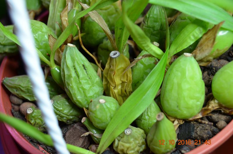 На данный момент все четыре побега образовали бульбы, но они пока еще созревают, видны прожилки, не помутнели. Поэтому ее пока особо не "морожу",