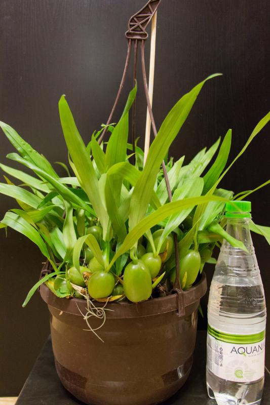 Получил вот такую красавицу Orchideengarten Karge. Coelogyne отличного качества. Понимал что в горшке 17 cm будет большой, но оказалось прям очень огромная))( бутылка 0,6 л.)Многие считаю бульба, а я не буду)))