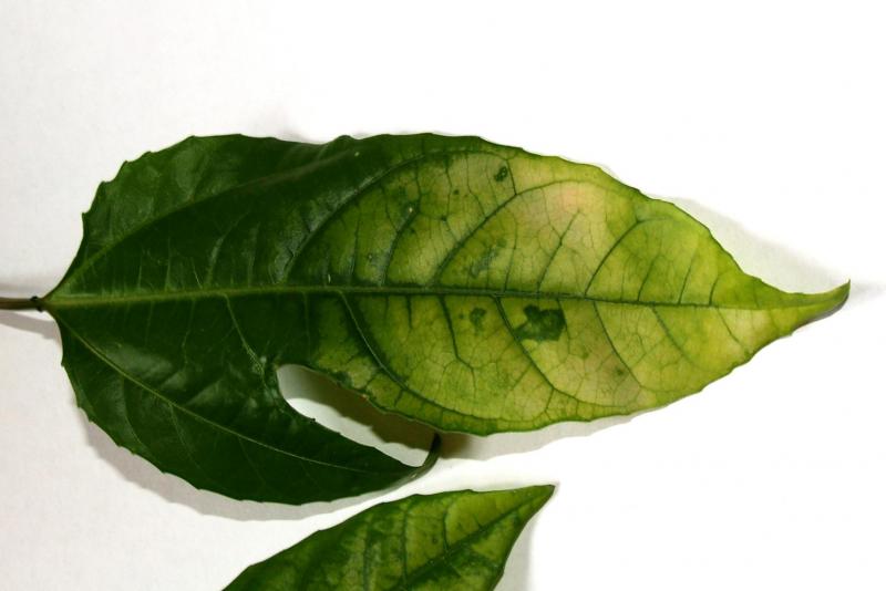 Ей 3 года, выросла из семян. В этом году после пересадки, стали желтеть листья, затем появились небольшие пергаментные пятна. Пораженных листьев с каждым днем становится все больше!!!