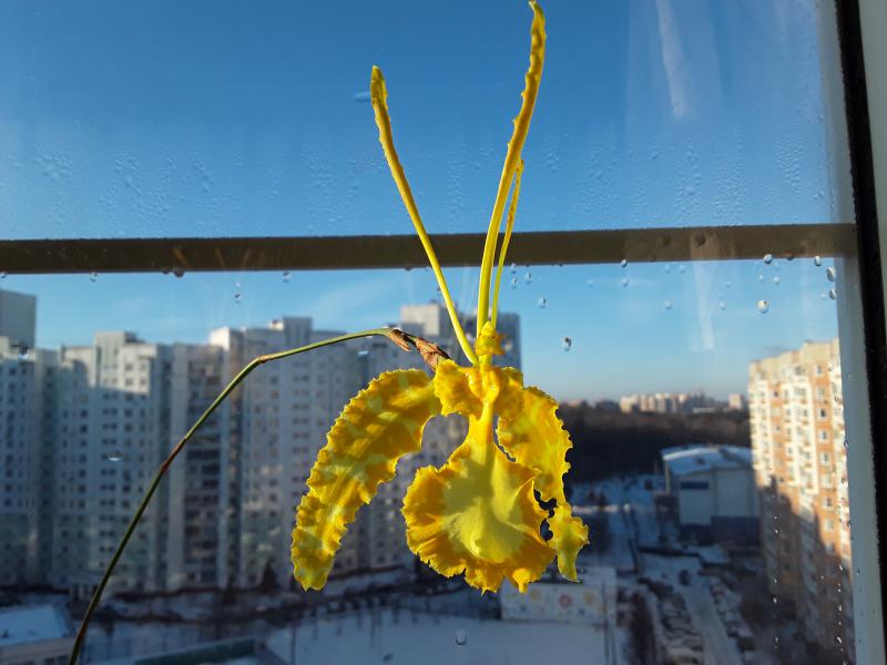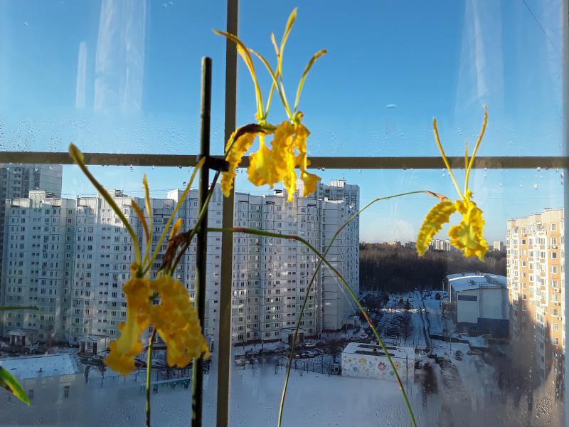 Обожаю психопсисы, постоянные цветуны! После того, как они появляются, с ними иногда возникают проблемы на период адаптации. Но впоследствии, прижившиеся и адаптированные психопсисы становятся одними из самых простых и благодарных орхидей. Самое важное, не торопить их, дать спокойно разрастись. Тогда при минимальных усилиях они будут радовать непрерывным цветением с одного цветоноса больше года! У меня на сегодня штук 6 разных. Желтые, самые старые, живут у меня уже около 4 лет. Брала разные подростки у Швертера, но они расцвели абсолютно идентичными. Совершенно этому не расстроилась, поскольку благодаря им у меня всегда цветочная поляна)). Что интересно, у обоих расцветает сразу по 2 цветка на цветоносе. Выращиваю их также, как каттлеи. Посадка, уход, освещение - все идентично. Только поливаю чуть чаще, потому что сидят большинство в одной крупной коре в глине. Цветоносы длинные, около метра. Растут цветоносы долго, в среднем около 7-8 месяцев. Но зато потом держатся на растении больше года, совершенно не мешая продолжению дальнейшего роста всего растения. И самый главный секрет для цветения - содержание на солнечном месте. Под лампами хорошо растут, но цветоносы выдают не охотно. Стоит перенести на солнечный подоконник, вероятность появления цветоносов увеличится в разы)). Но, также как и другие орхидеи, требуется постепенное приучение к солнцу и притенка в полуденные часы, поскольку легко может обгореть.