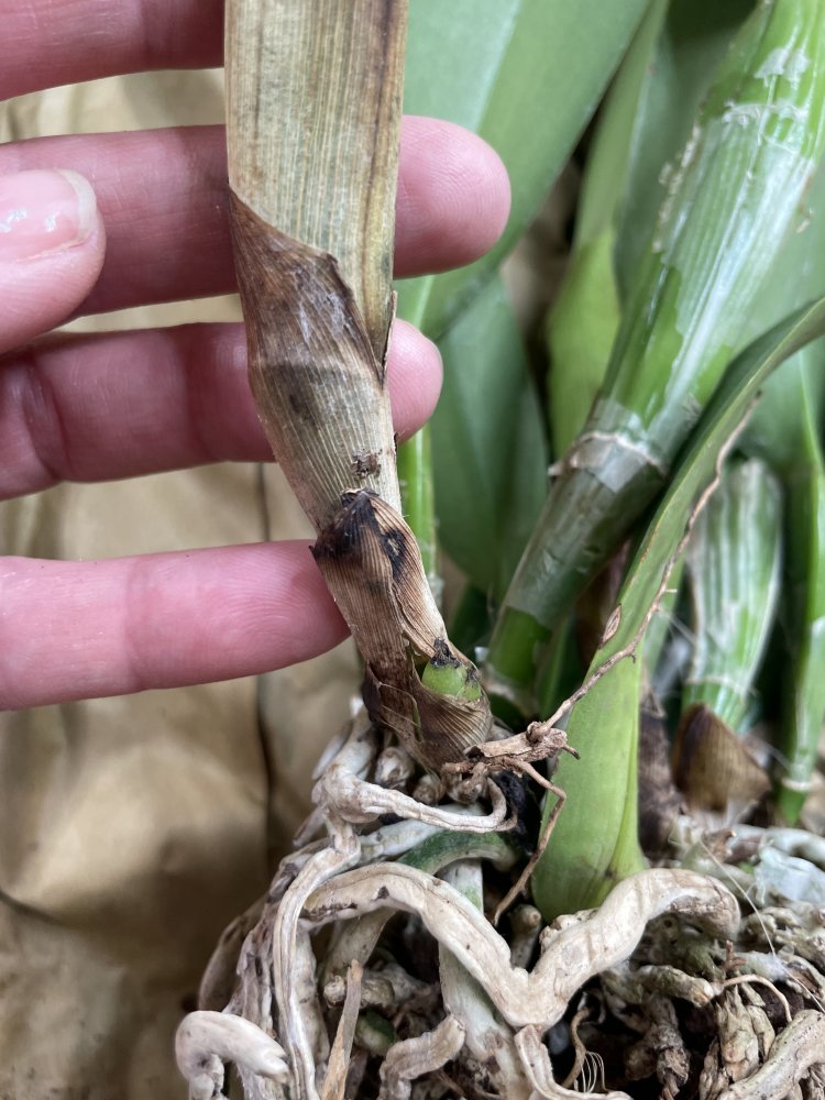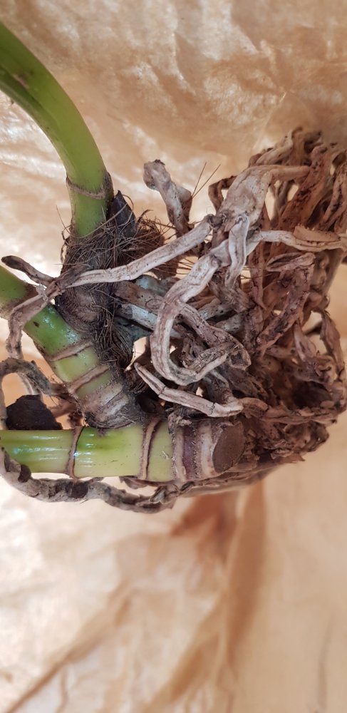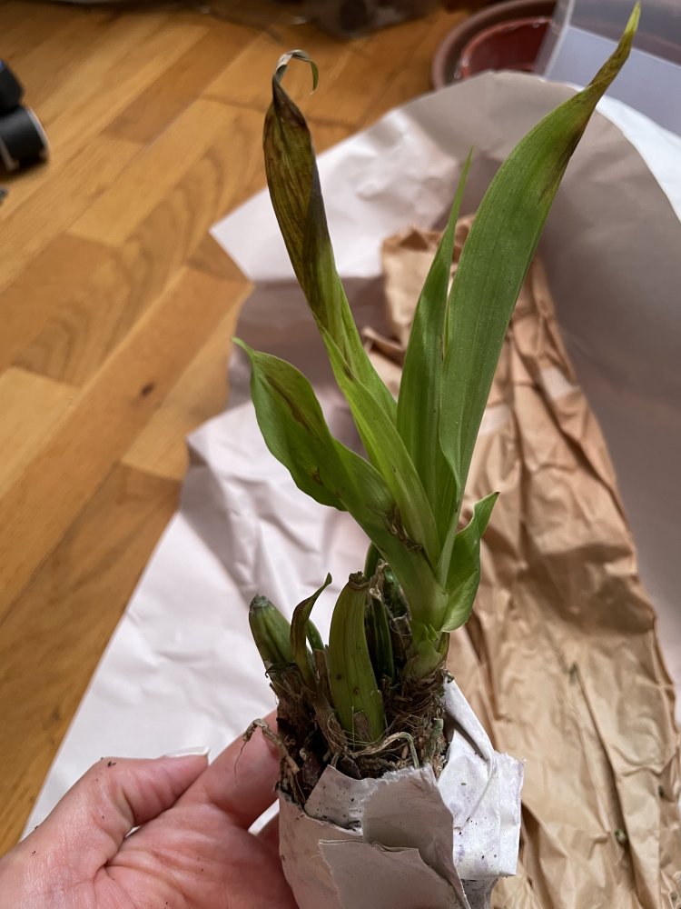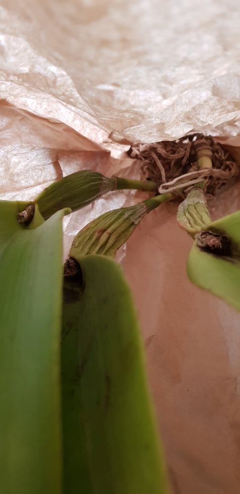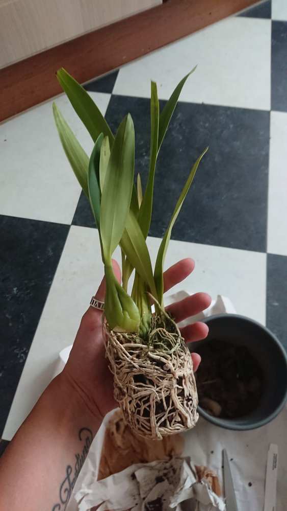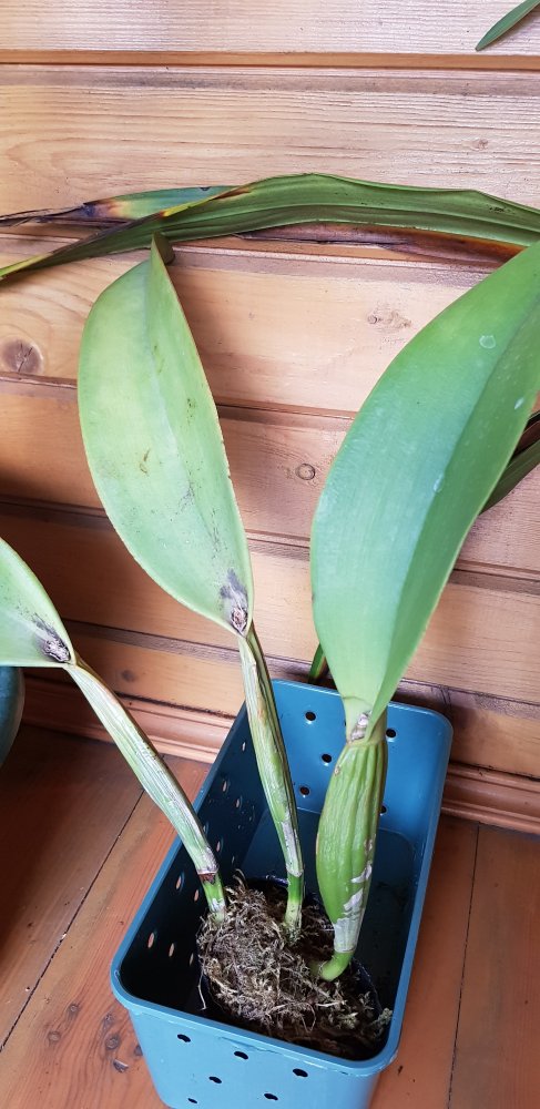 1). Cattleya iricolor - супер растение, взрослое , без пятен на листьях, один рост с чехлом, 3 молодых новых роста. Корни сухие, но для адаптации их должно хватить.