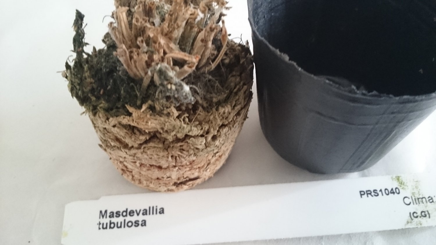 3). Restrepia curea - взрослая крупная куртина, сильно просушенная, отмерших листиков почти нет.