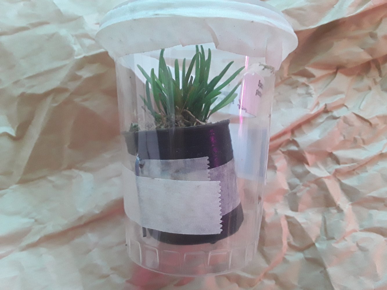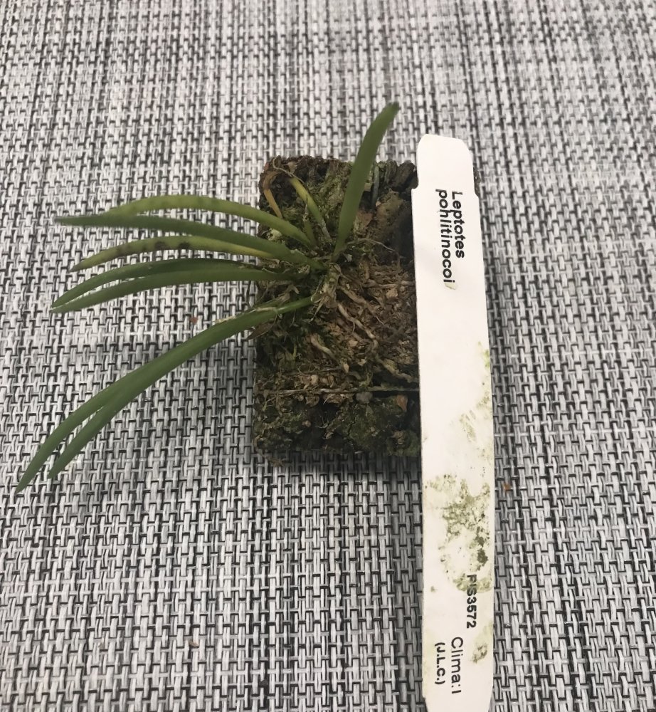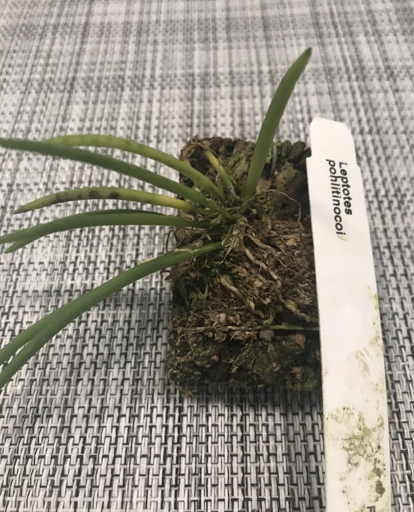 6). Lepanthes tentaculata - миниатюрка на блоке в баночке, очень усушенная, даже цвет листье изменился на красный, что очень плохо, растение может не выжить.