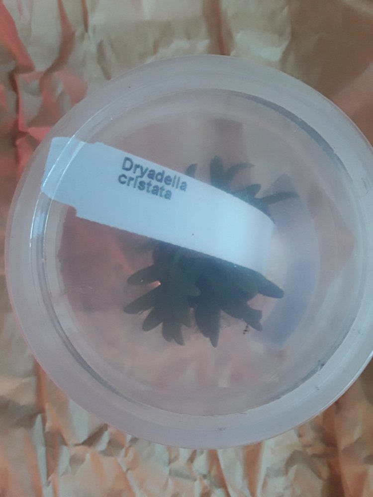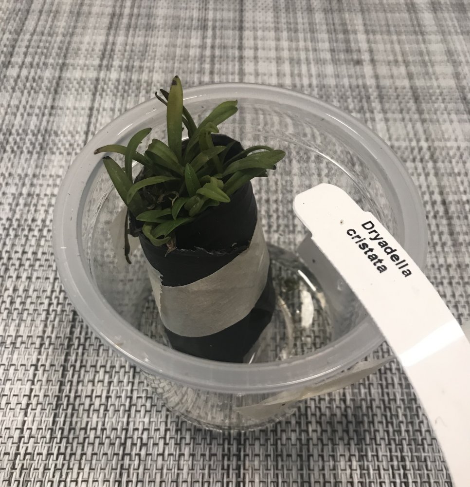8). Dryadella cristata - также шикарная малышка в баночке, куртинка маленькая, но живенькая.